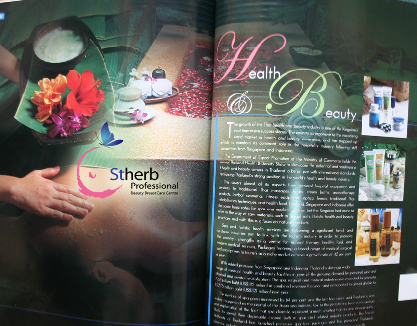 泰国并不是一个盛产知名品牌的国家,泰国政府为了树立品牌,20世纪末开始,开展<一省一个优质品牌>的国际推广活动。《ThaiProducts》(泰国官方泰产品手册)上就收录了这些泰国知名品牌。St|herb®作为《ThaiProducts》向全球推荐的两个泰国化妆品品牌之一,在第114-121页对圣荷进行了详细介绍(欢迎到泰国St|herb®北京代表处查看《ThaiProducts》)