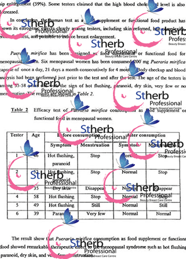 泰国国家植物学研究所找到了与女性自身分泌雌激素高度同源的野葛根异黄酮。泰国St|herb®产品富含高纯度野葛根异黄酮,可以模拟女性青春期发育过程,使乳房获得自然增长。