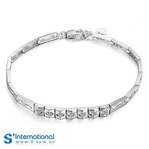 - 通体由18K白金构成,正面设计7个小节,美丽大方的花纹上点缀着绚丽的钻石,光彩夺目!