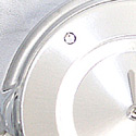 购物中国为您提供的商品均为原装正品!绝非水货、假货,全国联保,假一赔十! 这款光亮的超薄腕表,表带采用高度抛光的链条,十分赏心悦目。中心链条采用光亮小片,两端分别与一排大型透明水晶连接。抛光的钢质爪式链节,将表链与透明塑料表盒连接起来。银色磨砂钟面上,3、6、9和12钟点位置全部采用透明的小水晶。表示时间的时针和分针则为光亮的金属质地。 产品参数: 材质:表壳-合成树脂,表面-耐磨损树脂,表带-钢 功能:日常防水30米 规格:34*34*3.9mm 颜色:表盘-银色,表带-银色,指针-黑色