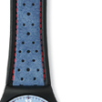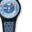 适合休闲男士的优雅和创新表。这款Swatch Jelly in Jelly芯原创系列腕表的皮制表带配有红色针,黑边的穿孔蓝色仿麂皮带子。无光泽的黑色塑料表壳中间是带有黑色网眼中心区的浅色闪亮蓝表盘。白色分钟指针和红色小时刻度线位于所有整点的白色阿拉伯数字两侧。日期显示以单独的四方和半圆窗口表示星期和日期。带有亮红色闪亮显示的尖箭头的铜制时针、分针和白色秒针指示时间。 产品参数: