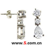 这对18K白金钻石耳钉对上各镶有一颗1克拉的水滴形主钻,两颗分别为0.5克拉和0.3克拉的圆形副钻,颜色为H色,净度为VVS以上钻石。