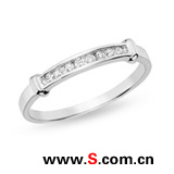 PT950铂金钻石戒指,槽镶的镶嵌工艺,总共镶嵌了九颗钻石,它是那么简净纯粹,细细品来风味隽永,娇小玲珑的淑女柔情得以全面展现。