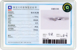 购物中国所出售钻石成品均有国家珠宝玉石质量监督检验中心或国家首饰质量监督检验中心出据的成品鉴定检验证书。