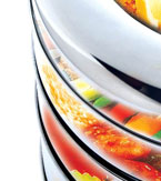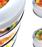 独奇特点: 1、多用节能:“节能锅”摒除了传统的蒸锅弊端,筒状的物理空间,相互层层套接,一锅多用。 2、快捷方便:以高温产生的水分子蒸煮食物,利用金属材质导热快的性能,受热快速均匀,三菜一汤15分钟OK! 3、原味营养:蒸锅多层相互套接形成独自空间,相互之间不串味,营养不流失,保有食物原汁原味。 4、健康环保:“节能锅”材质以特级不锈钢制成,锅身无涂层,高温蒸煮使食物不老化、不焦糊。在烹调过程中,锅具不会产生油烟,厨房干净不油腻,更能维护家人的身体健康。科技引领健康医学界营养师推荐,为了您的健康,尽量多食用蒸煮的食物!