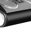 商品规格: 输入:1/8" (3.5mm) 迷你立体声插座 驱动单元:两个 Odyssey™ 钕驱动单元 输出功率:每声道 3 瓦 频率响应:100Hz – 20KHz 输入阻抗:>10 千欧姆 信噪比:>80dB 输入电压:100 – 230 Vac,50 – 60 Hz 尺寸:宽度:7" (175mm) x 深:3.5" (88mm) x 高:1.4" (35mm) 重量:12 oz (350g) 商品特点: JBL On Tour是重视便携性而设计的立体声扬声器,用四枚5号电池供电,采用Class D数字放大器和AEMS系统,使到喇叭可以节省电量,实现最长24小时的播发时间。 这款喇叭尺寸袖珍(17.5 x 8.8 x 3.5公分),重量轻盈(350公克),且外型精致典雅。由于使用了一般stereomini jack音讯接头,所以举凡 PSP、iPod、iPod mini、MP3与CD播放器,甚至于计算机都可以使用。 OnTour外型像只眼镜盒,平常关上作为保护盖的上盖往后推开,就露出里面的两个钕(neodymium)金属单体,此时上盖也就成了架子。此外,On Tour采用触控式音量调节按钮,只要轻轻一按,就可将音量调高或调低;两个按钮同时按下,就可静音或者取消静音。On Tour可使用电池或插上变压器使用交流电。