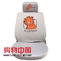 2、产品设计简约,靠背上绣有可爱的加菲猫图案。整套座套为贴心式设计,座垫套和靠背套是分体的,适用所有的小型轿车。