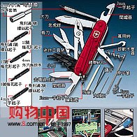 【规格】长度91毫米,3.5寸(重157克) 【质地】顶级不锈钢 【颜色】如图 【功能】 1.大刀 2.小刀 3.拔软木塞器 4.开罐器 5.--含小一字起子 6.开瓶器 7.--含大一字起子 8.--含电线拨皮器 9.钻孔器 10.钥匙环 11.镊子 12.牙签 13.缝线针孔 14.扳手 15.5mm female Hex drive for D-SUB connectors 16.4mm female Hex drive for the bits 17.Bit Pozidrive 0 18.Bit Pozidrive 1 19.case with 20.Bit Slotted 4mm 21.it Phillips 2 22.Bit Hex 4mm 23.Bit Torx 8 24.Bit Torx 10 25.Bit Torx 15 26.原子筆 27.also to set DIP switches 28.大頭針 29.迷你一字起子 30.鉗子 31.含鐵絲剪 32.含鐵絲折彎器 33.剪刀 34.多功能鉤 【包装】瑞士原装纸盒包装 |