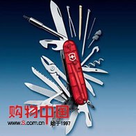 玩电脑时兴DIY,您遇到过找不到合适的工具而无法拧开电脑特殊螺丝的困境吗(如内六角螺母)?维氏军刀公司根据电脑系统安装,调试,维修的需要,将经典型号”冠军”上的部分特种工具更换成电脑DIY必备工具.依然保持一贯精密,可靠,实用,大方的风格.巧妙内置的全套电脑工业标准螺丝工具,配合钳子,剪刀与刀,能解决电脑装配,调整过程中遇到的任何需要,只此一把工具,即令您无许他求.不仅是DIY爱好者的趁手工具,更是电脑硬件专业人员事半功倍的极佳工作伴侣.维修各种家用电器同样实用. 长度:91毫米,3.5寸 功能: 1.大刀 2.小刀 3.拔软木塞器 4.开罐器 5.含小一字起子 6.开瓶器 7.含大一字起子 8.含电线拨皮器 9.转孔锥 10.钥匙环 11.镊子 12.牙签 13.缝线针孔 14.扳手 15.5mm内六角扳手 16.4mm内六角扳手套筒 17.- 0号螺丝起子 18.- 1号螺丝起子 19.迷你工具架 20.-4mm一字起子 21.-飞利浦2号螺丝起子 22.-4mm外六角扳手 23.-8号星形改锥 24.-10号星形改锥 25.-15号星形改锥 26.原子笔 27. 指拨器 (调CPU的倍外频) 28.大头针 29.1.5mm一字起子 30.钳子 31.含铁丝剪 32.含铁丝折弯器 33.剪刀 34.多功能钩 35.木锯 36.铁锯 37.金属锉刀 38.指甲锉刀 39.指甲清洁器 40.2.5 mm 一字起子 41.刨刀 |