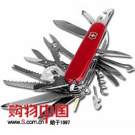 此款刀定型已经100年以上,是瑞士军刀中的经典刀款! 规格: 长9.1厘米,宽2.6厘米,厚3.3厘米,重185克。 33种功能: 1.大刀 2.小刀 3.拔木塞钻 4.开罐头器,兼附: 5.-小改锥也可用于十字螺丝 6.开瓶器,兼附: 7.-改锥 8.电线剥皮槽 9.钻孔锥 10.钥匙圈 11.镊子 12.牙签 13.剪刀 14.多用途钩(提携包裹) 15.木锯 16.去鳞刀,兼附: 17.-卸钩器 18.-尺子(厘米及英寸) 19.指甲锉,兼附: 20.-钢锉 21.-指甲除垢器 22.-钢锯 23.微型改锥 24.木凿子 25.钳子,兼附: 26.-钢丝钳 27.拆电线工具 28.十字改锥 29.放大器 30.圆珠笔 31.大头针,不锈钢 32.眼镜改锥(专利产品) 33、缝纫孔。 这是一款产自瑞士、正宗维士(VICTORINOX)品牌的瑞士军刀,是最实用和有效的多功能工具,用途广泛、设计优雅,是瑞士军刀的经典代表。适用于日常生活、汽车自行车维修,野外考察、旅行探险、旅游渡假、宿营驻扎等各种情况。由于功能全面、设计精巧,一刀在手仿佛拥有一个真正的万能工具箱,需要时象变魔术一样组合出各种应用来,是理想的装备。它还是瑞士军刀的经典代表,被纽约现代艺术博物馆、慕尼黑应用艺术博物馆按“世界设计经典”收藏。不用的时候,摆在书架上、酒柜里,浓郁的刀具文化、精湛的制作工艺,也会吸引每一位到访的客人。 |