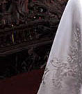 本款采用进口锻,纯手工刺绣。穿着此款嫁衣,可以充份表现无人能极的亮丽奢华。