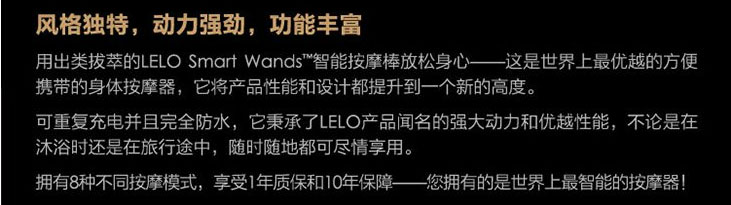 瑞典LELO SMART WANDS 智能按摩棒,风格独特,动力强劲,功能丰富,世界领先的智能触摸感应技术,带来按摩享受的全新体验。